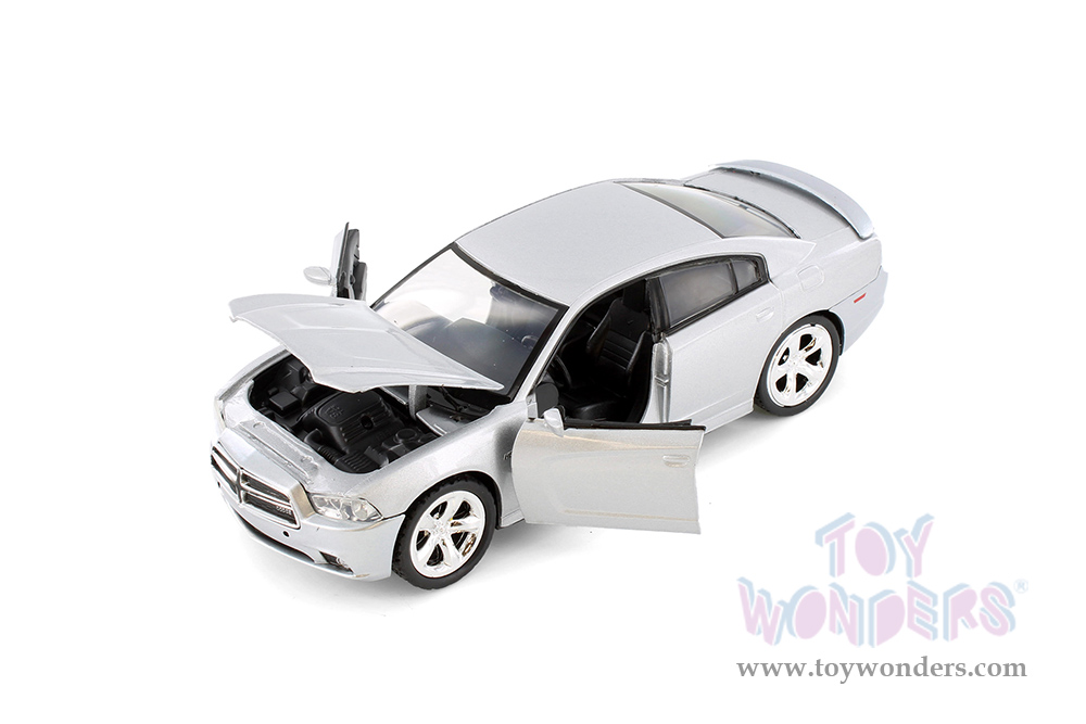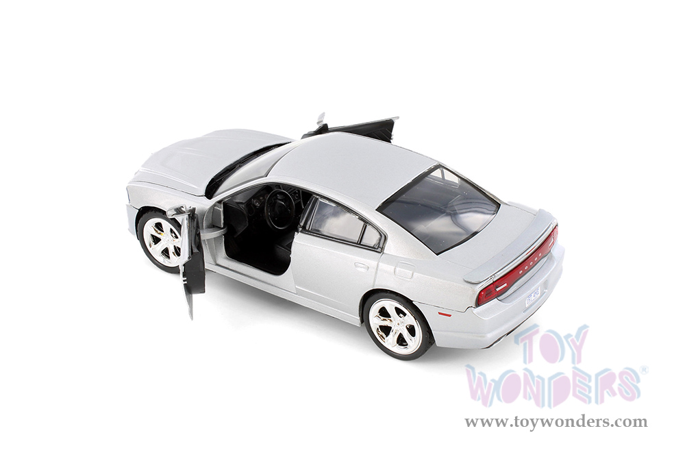 77354D Showcasts® Collectibles - 2011 Dodge Charger R/T Hardtop. 1:24 scale diecast collectible model car. This Dodge Charger is an 8.25"L x 3"W x 2.25"H diecast metal convertible with workable steering, openable doors and hood. 4 pcs per display box. 77354D in assorted colors.