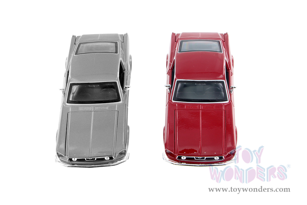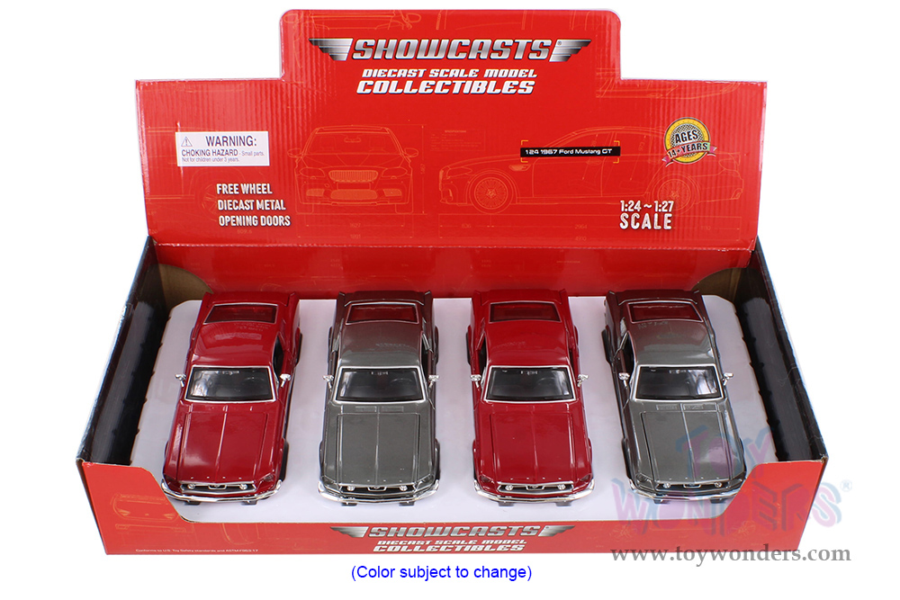 37260 Showcasts® Collectibles - 1967 Ford Mustang GT500 Hard Top. 1:24 scale diecast model car. This Ford GT 500 is a 7.75"L x 2.75"W x 2.25"H die cast metal car with openable doors and hood. 4 pcs per display box in assorted colors.