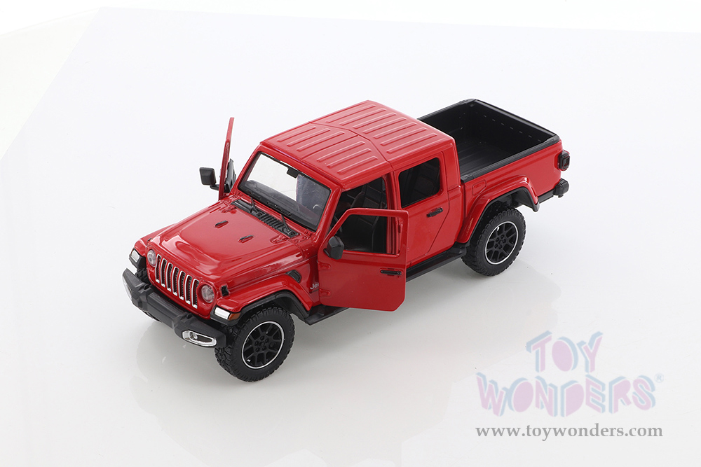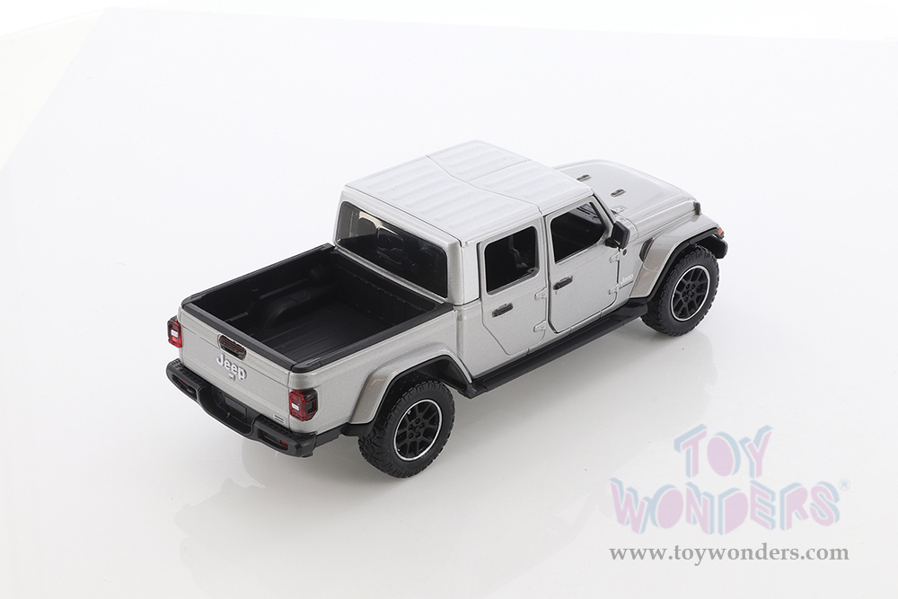 79365/16D Showcasts Collectibles - 2021 Jeep® Gladiator Overland (Closed Top) Pickup Truck. 1:27 scale diecast collectible model car. This Jeep® Gladiator is an 8"L x 2.75"W x 2.75"H diecast metal car with freewheeling, openable doors. This 2021 Jeep® vehicle is manufactured by Motormax for Showcasts Collectibles. 4 pcs per display box in assorted colors.