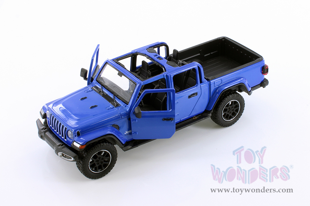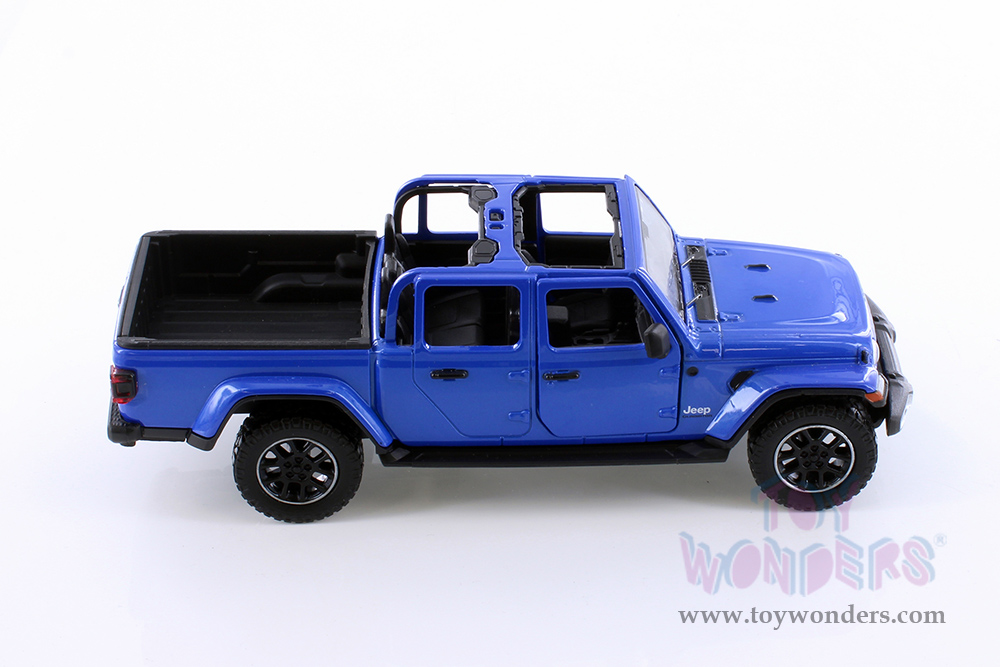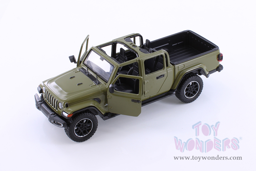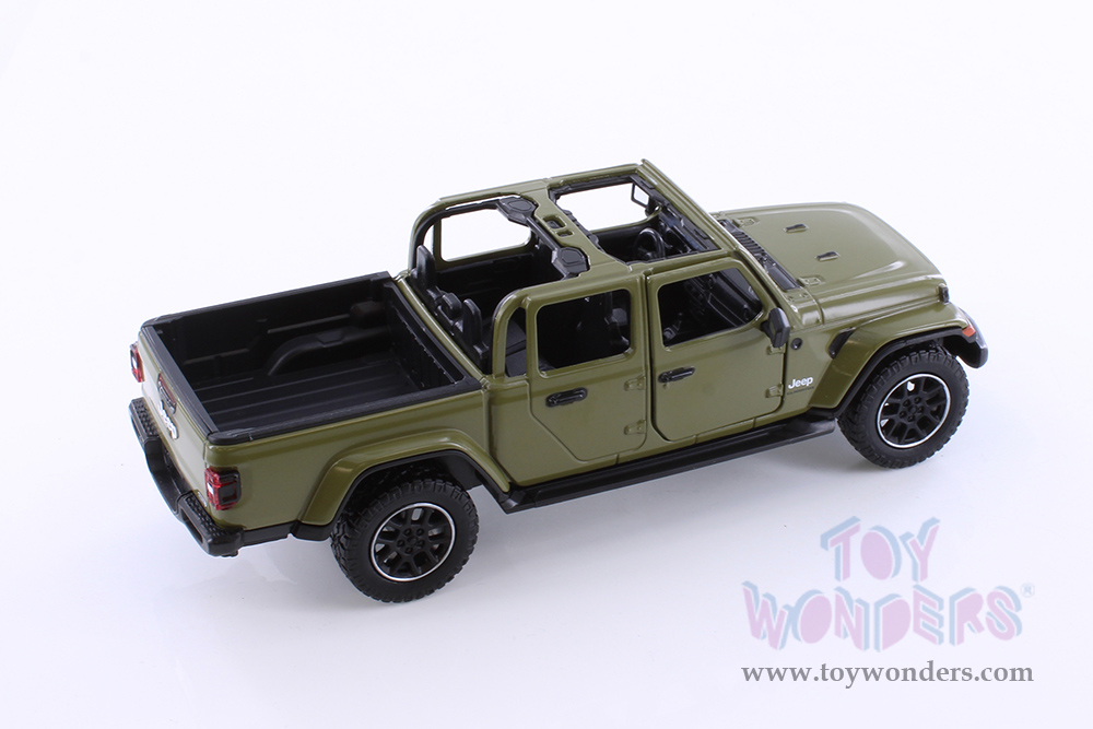 79367/16D Showcasts Collectibles - 2021 Jeep® Gladiator Overland Pickup Truck. 1:27 scale diecast collectible model car. This Jeep® Gladiator is an 8"L x 2.75"W x 2.75"H diecast metal car with freewheeling, openable doors. This 2021 Jeep® vehicle is manufactured by Motormax for Showcasts Collectibles. 4 pcs per display box in assorted colors.