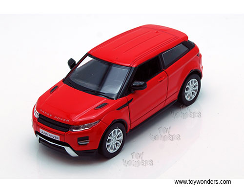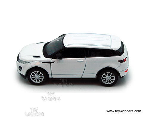 555008 Showcasts Collectibles - Land Rover Range Rover Evoque SUV. 5" diecast collectible model car. This Land Rover Evoque is a 5"L x 2"W x 1.75"H die cast metal car with pull back action and openable doors. This sport utility vehicle comes in 12 pcs per display box in assorted colors.  48 pcs per inner box.