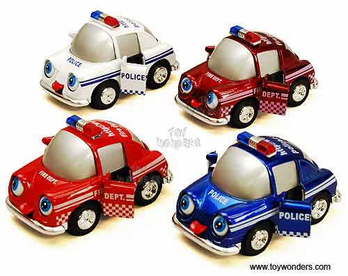 Showcasts - Cutie Police & Fire Department Cars w/ Movable Eyes & Tongues (4" diecast model car, Asstd.) 403D