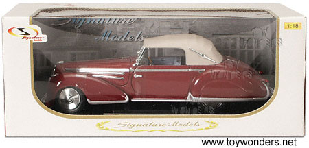 18122BG SIGNATURE MODELS - 1947 Delahaye 135M. 1:18 scale diecast collectible model car. This 1947 Delahaye is a 10.5" long diecast car with opening doors, hood & trunk, free wheels, and workable steering. Detailed engine and components. This 47 Delahaye 135M is manufactured by Signature Models. 18122 in BURGUNDY color. Individually packed in a window box.