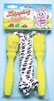2096 Skipping Rope. 90" jump rope in two assorted colors. Hang-up packaging. Package size: 4.75"x9". Inner of 2 dozen.