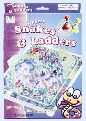 The classic game of race and chase. Includes colorful, plastic game board, pop-o-matic dice, 2 plastic ladders/slides, 4 snake marbles. Blister box is 7.5"W x 10"H x 1.25"D. Rack toy.