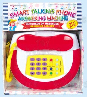 SC379 Smart Phone/Answering Machine. 9" phone & answering machine. Plays hundreds of different messages plus 36 melodies & more. In a TRY ME box. Includes 2"AA" batteries. Box size: 9"W x 10.5"H x 3"D.