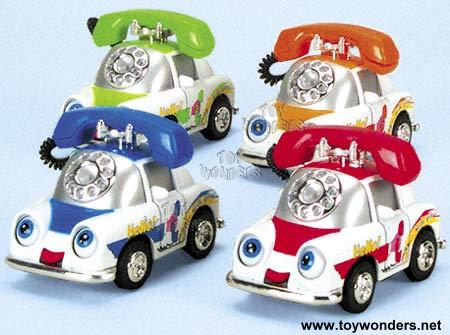 4130 Sonic Phone Car with IC sound 4" die cast metal funny telephone-like car with pullback motor action and IC sound. Eyes & tongue move when car drives forward. Battery included 12 pcs per display box in assorted colors