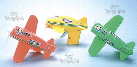 110 Sparking Airplane. 6" long airplane. Sparks fly out of the gun turret located near the airplane's cockpit when trigger is pulled. Display of 12 pcs in assorted colors. 36 pcs/inner. This item is bulk packed 12 assorted colored sparking airplanes in a counter display box. Note: This item contains no diecast metal.