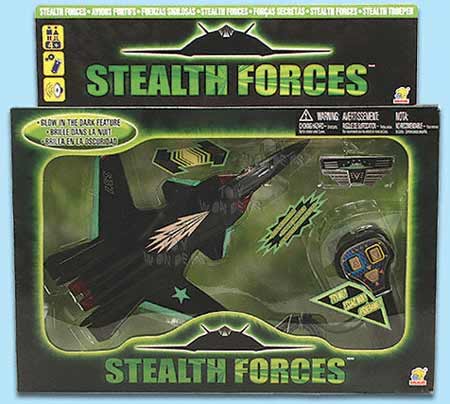2901TS Stealth. 10" wire controlled jet w/ air force seal & glow-in-the-dark feature. 2 "AA" batteries included. box size: 14"Lx3.75"Wx9.5"H.