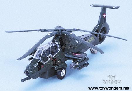 362/2SL Stealth Copter Dimensions: 8.25"L x 3"W x 2.25"H Stealth die cast metal helicopter with sound and light. Features light-up cockpit, missiles, and front gun. Also has attack sounds and pull-back motor action with unfolding blades. 6 pcs per display in assorted colors and styles: US Army and US Air Force 24 pcs per inner box
