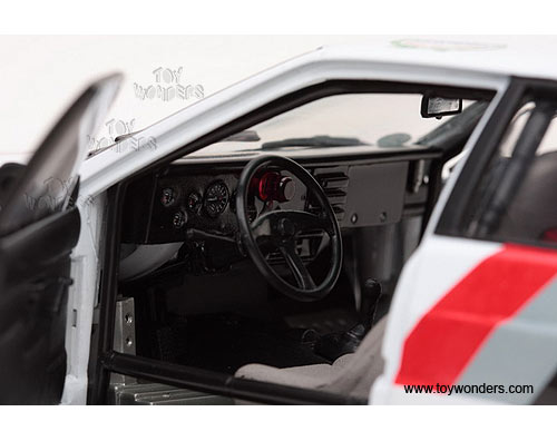4192 Sun Star Classic Rally - Audi Quattro Rally Race Car M. Wilson/ M. Greasley #17 (1982 RAC Lombard Rally). 1:18 scale diecast collectible model car. This Audi Quattro racing car is a 9.5"L x 3"W x 2.75"H die-cast metal car with openable doors, hood & trunk. Turnable front wheels, steering function, detailed interior, engine & chassis. Mounted on a display stand. Classic Rally collectibles. This Audi Quattro is manufactured by Sunstar. Individually packed in a window box. Box size: 14"L x 6.5"W x 5"H. Item 4192 is in WHITE and BLACK 2-tone colors.