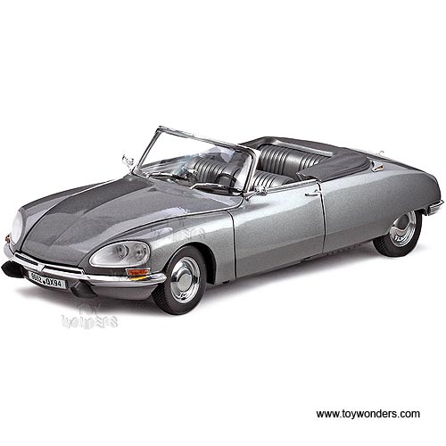 4751 SUN STAR Platinum Collection - Citroen DS 21 Cabriolet Convertible. 1:18 scale diecast collectible model car. This Citroen DS21 is a 10" long die cast metal car with openable hood & doors. The Citroen DS-21 is manufactured by SunStar. 4751 in METALLIC GREY color. Individually packed in a window box. Box size: 14.5"Lx 6.75"Wx 6"H.