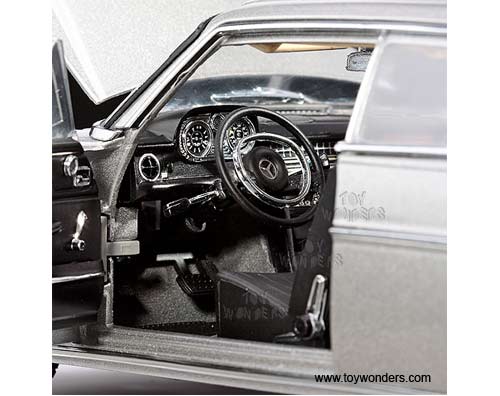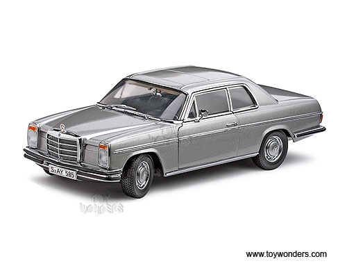 4585 SUN STAR Platinum Collection - Mercedes-Benz Strich 8 280C Coupe Hard Top w/ Sunroof. 1:18 scale diecast collectible model car. This Mercedes Benz is about 10" long die-cast metal car with openable hood, doors, sunroof & trunk. The Mercedes-Benz Strich 8 280C Coupe is manufactured by SunStar. Item 4585 is in SIBERGRAU (METALLIC GREY) color. Individually packed in a box. Box size: 14.75"L x 6.8"W x 6"H.