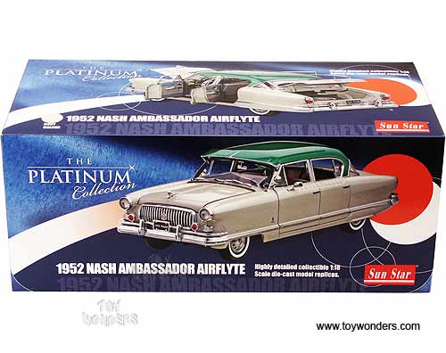 Sun Star Platinum - Nash Ambassador Airflyte Hard Top (1952, 1/18 scale diecast model car, Sea Mist Gray w/ Meadow Green Roof) 5111