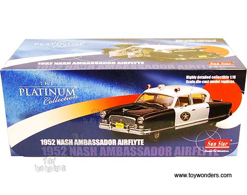 Sun Star Platinum - Nash Ambassador Airflyte Police - Kenosha county sheriff's department (1952, 1/18 scale diecast model car, White/ Black) 5115