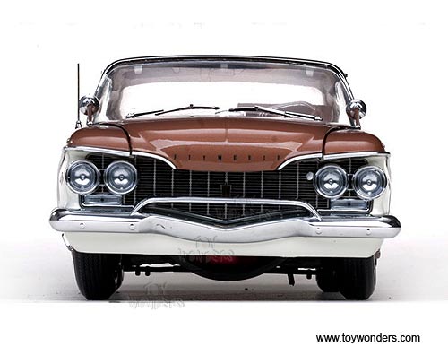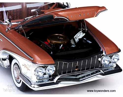 5422 Sun Star Platinum - 1960 Plymouth Fury Hardtop. 1:18 scale diecast collectible model car. This Plymouth Fury is about 12" L diecast metal car with openable hood, doors, and trunk. The 1960 Plymouth Fury is manufactured by SunStar. Item 5422 is in CARAMEL METALLIC & OYSTER WHITE 2-tone colors. Individually packed in a box. Box size: 14.75"L x 6.75"W x 6"H.