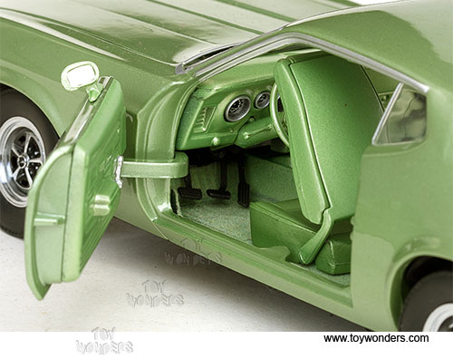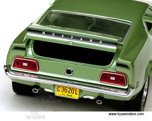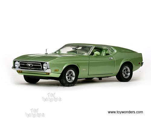 3620GN SUN STAR USA - 1971 Ford Mustang Sportsroof Hardtop. 1:18 scale diecast collectible model car. This Ford Mustang Sportsroof is a 10.5"Lx 3.75"Wx 2.5"H diecast car with openable doors, hood, and trunk. Turnable front wheels, steering function, detailed interior, engine, and chassis. Sits on a display plaque. This 71 Ford Mustang Sportsroof is manufactured by Sun Star. American collectibles. 3620GN is in MEDIUM GREEN color. Individually packed in a window box. Window Box size: 14"Lx 6.5"Wx 5"H.