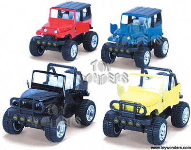 9521/4DH Super Big Wheel Roader. 4.5" die cast, 4x4 with opening doors/hood and pullback action. No decals. 12 pcs/display. 24 pcs/inner. Assorted styles and colors.