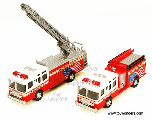 9928D Super Fire Engine. 6" die case fire truck with pullback motor action. 12 pcs per display in assorted styles. 72 pcs/inner. Z8
