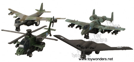 9860BD Super Flighters. These military fighter jets and helicopters are 4.75" to 5.25" long diecast metal with pullback motor action. 12 pcs per display box. 9860 in 4 assorted styles. 72 pcs per inner box.