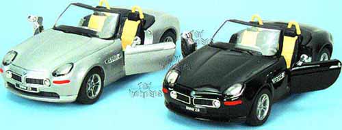 7741D Superior - 1999 BMW Z-8 Convertible. 1:24 scale diecast collectible model car. This 1999 BMW Z8 is a 7.25" long diecast metal sports car with free wheel and opening hood and doors. This 99 BMW Z 8 is manufactured by Superior/ Sunnyside. 6 pcs per display box. 18 pcs per inner box. 7741 in assorted colors.