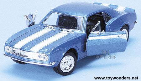 7731D 1967 Chevrolet Camaro Z-28. 1:24 scale diecast model car. This 1967 Chevy Camaro is a 7.5" long diecast metal with free wheel, openable doors & hood, and workable steering. This 67 Chevy Camaro is manufactured by Superior/Sunnyside. 4 pcs per display box. 7731 in assorted colors. GM is a trademark of the General Motors Corporation.