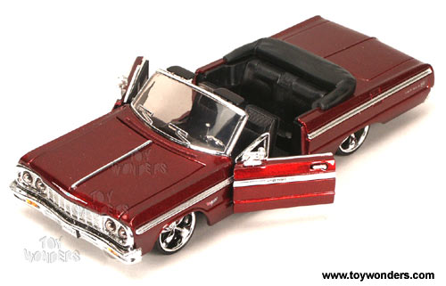 8711L2 Superior - 1964 Chevrolet Impala Low Rider Convertible. 1:24 scale diecast convertible model car. This 1964 Chevy Impala Lowrider is an 8.5"Lx 3.25"Wx 2"H die cast metal car with openable hood & doors. Free wheeling with star rims. This classic 1964 Chevrolet Impala is manufactured by Superior/ Sunnyside. 4 pcs per display box in assorted colors.