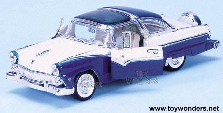 8704/5D 1955 Ford Crown Victoria. 1:24 scale diecast model car. This 1955 Ford Crown Victoria is a 7.75"L diecast metal oldies with opening doors/hood. In convertible & hardtop styles. This 55 Ford Crown Victoria is manufactured by Superior/Sunnyside. 12 pcs per display box. 8704 in assorted colors.