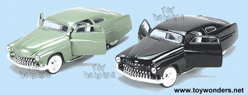 7726D 1949 Ford Mercury. 1:28 scale diecast model car. This 1949 Ford Mercury is a 7"L x 2.75"W x 2"H diecast metal with opening doors and hood and steerable front wheels. This 49 Ford Mercury is manufactured by Superior/Sunnyside. 6 pcs per display box. 18 pcs per inner box. 7726 in assorted colors.