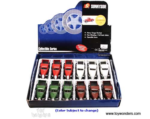 5607D/8 Suuperior - 1937 Ford Pick-Up Truck. 1:34 scale diecast collectible model car. This 1937 Ford is a 5.75"Lx 2"Wx 2.25"H diecast metal free wheel pick up truck with openable doors & tailgate. This 37 Ford pickup truck is manufactured by Superior/ Sunnyside. 12 pcs per display box in assorted colors. 48 pcs per inner box. Z8.