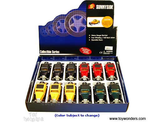 5744D Superior - 1932 Ford V8 Deluxe 3-Window Coupe. 1:30 scale diecast collectible model car. This 1932 Ford V-8 Deluxe 3-Window Coupe is a 5.75"L x 2.25"W x 2.25"H diecast metal with openable doors & rumble seat. This 32 Ford V8 Deluxe 3-Window Coupe is manufactured by Superior/ Sunnyside. 36 pcs per inner box. 12 pcs per display box and in assorted colors. Z8