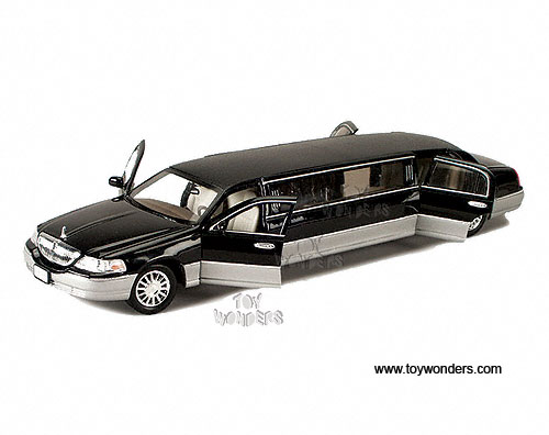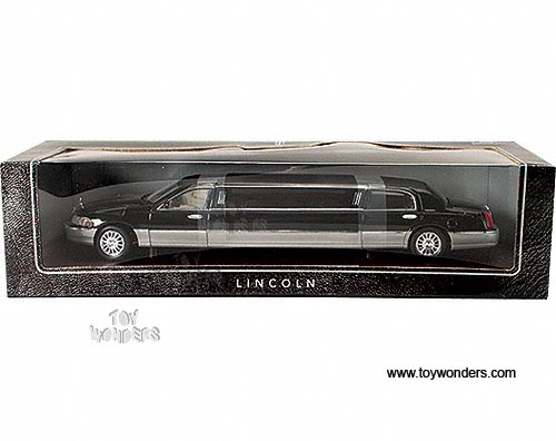 0702WB Superior - 2003 Lincoln Limousine. 1:28 scale diecast model car. This 2003 Lincoln limo is 12.5" long die cast with opening doors/hood/trunk & workable steering. These Lincoln limos are manufactured by Superior individually window boxed. BLACK color limo.