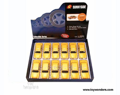 6853D/96 Superior - 1963 New York City Checker Taxi Cab. 1:34 scale diecast collectible model car. This New York classic city taxicab is a 6"Lx 2.25"Wx 2"H die cast metal cab with openable doors. Manufactured by Superior/ Sunnyside. 12 pcs per display box in YELLOW color.