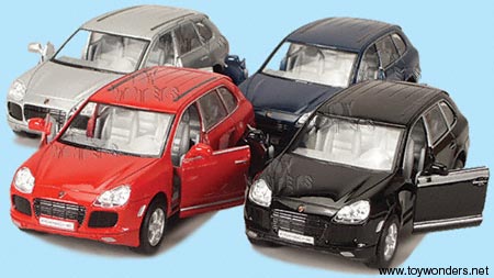 5613D 2003 Porsche Cayenne Turbo. 1:32 scale diecast model car. This 2003 Porsche Cayenne Turbo is a 5.75" long diecast metal SUV with pullback motor action and opening doors/rear door. This 03 Porsche Cayenne Turbo sports utility vehicle is manufactured by Superior/Sunnyside. 48 pcs per inner box and 2 pcs per display box. 5613 in assorted colors. Z8.