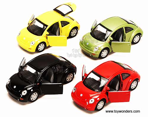 5743D Superior - Volkswagen New Beetle Hard Top. 1:32 scale diecast collectible model car. This VW Buggy is a 5" long diecast metal VW New Beetle with pullback motor action and openable doors & hatchback. This Volkswagen Bug is manufactured by Superior/ Sunnyside. 12 pcs per display box and in assorted colors. 48 pcs per inner box.