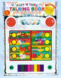 SC380 Talking Book. 12.5" talking book that has 8 animal sounds, 8-note keyboard & 36 harmony melodies. In a TRY ME box. Includes 2 "AA" batteries. Box size: 11.75"Lx1.75"Wx15.5"H.