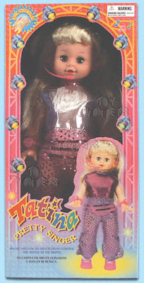 1819SCD Tatina Pretty Singer. 18" sonic controlled doll sings & dances w/ blinking earrings & bracelets. Requires 3 "AA" batteries. Box size: 9"Lx4.75"Wx19"H. 6 pcs/inner.