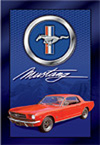 T-590 1964 Ford Mustang Nostalgic tin sign. Collector metal signs. A collection of yesterday's signs. Great for decorating homes, offices, restaurants, etc. Lithographed steel metal. T590. Mounted on a black 20" x 16" card.