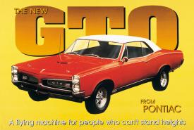 TD-495 1967 Pontiac GTO nostalgic tin sign. Collector metal signs. A collection of yesterday's signs. Great for decorating homes, offices, restaurants, etc. Lithographed steel metal. Mounted on a black 20" x 16" card. TD495. GM is a trademark of the General Motors Corporation.