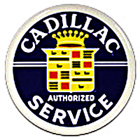 RD-63 Cadillac Service nostalgic round tin sign. Collector metal signs. A collection of yesterday's signs. Great for decorating homes, offices, restaurants, etc. Lithographed steel metal. RD63 measures 12" diameter. This tin sign is shrink wrapped on to a 12.5" x 19" piece of cardboard for protection during transport.