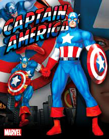 PD-1220 Captain America Marvel tin sign. A collection of yesterday's signs. Great for decorating homes, offices, restaurants, etc. Lithographed steel metal. Mounted on a black 20" x 16" card. PD1220