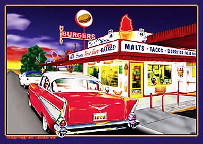 Tin Sign: Chevy Belair Red at A Malt & Burger Stop KO01