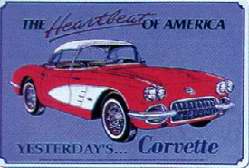 T-192 Chevy Heartbeat Vette nostalgic tin sign. Collector metal signs. A collection of yesterday's signs. Great for decorating homes, offices, restaurants, etc. Lithographed steel metal. T192 Size: 17.75"W x 11.75"H. Mounted on a black 20" x 16" card. GM is a trademark of the General Motors Corporation.