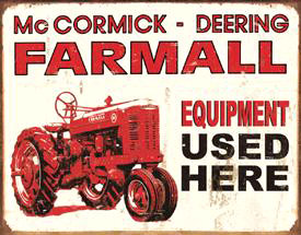 TD1278 Farmall Farm Tractor tin sign. Collector metal signs. A collection of yesterday's signs. Great for decorating homes, offices, restaurants, etc. Lithographed steel metal. Mounted on a black 20" x 16" card. TD1278.