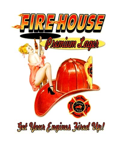 BG692 Firehouse Lager tin sign. Firehouse Collector metal signs. A collection of yesterday's signs. Great for decorating homes, offices, restaurants, etc. Lithographed steel metal. Mounted on a black 16" x 20" card. BG692