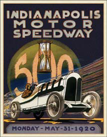TW-1578 Indianapolis Motor Speedway 500 (Indy 500) - 1920 Cover Nostalgic tin sign. Collector metal signs. A collection of yesterday's signs. Great for decorating homes, offices, restaurants, etc. Lithographed steel metal. TW1578. Mounted on a black 20" x 16" card.