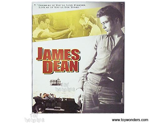 PG-537 James Dean Dream tin sign. Collector metal signs. A collection of yesterday's signs. Great for decorating homes, offices, restaurants, etc. Lithographed steel metal. Mounted on a black 20" x 16" card. PG537