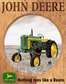 TD-919 John Deere Farm Tractor tin sign. Collector metal signs. A collection of yesterday's signs. Great for decorating homes, offices, restaurants, etc. Lithographed steel metal. Mounted on a black 20" x 16" card. TD919