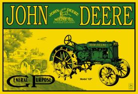 TD-668 John Deere Tractor "GP" Model nostalgic tin sign. Collector metal signs. Great for decorating homes, offices, restaurants, etc. Lithographed steel metal. TD668 Size: 16"W x 11"H. Mounted on a black 20" x 16" card.