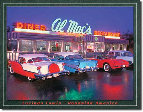 TD-1129 Mac's Diner tin sign. Collector metal signs. A collection of yesterday's signs. Great for decorating homes, offices, restaurants, etc. Lithographed steel metal. Mounted on a black 20" x 16" card. TD1129.